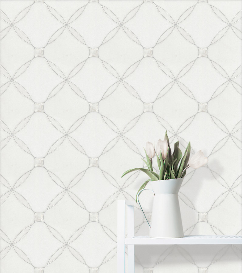 - Olynthos Statuary Mist And Thassos Standard 12×13 Wisp Mosaic
