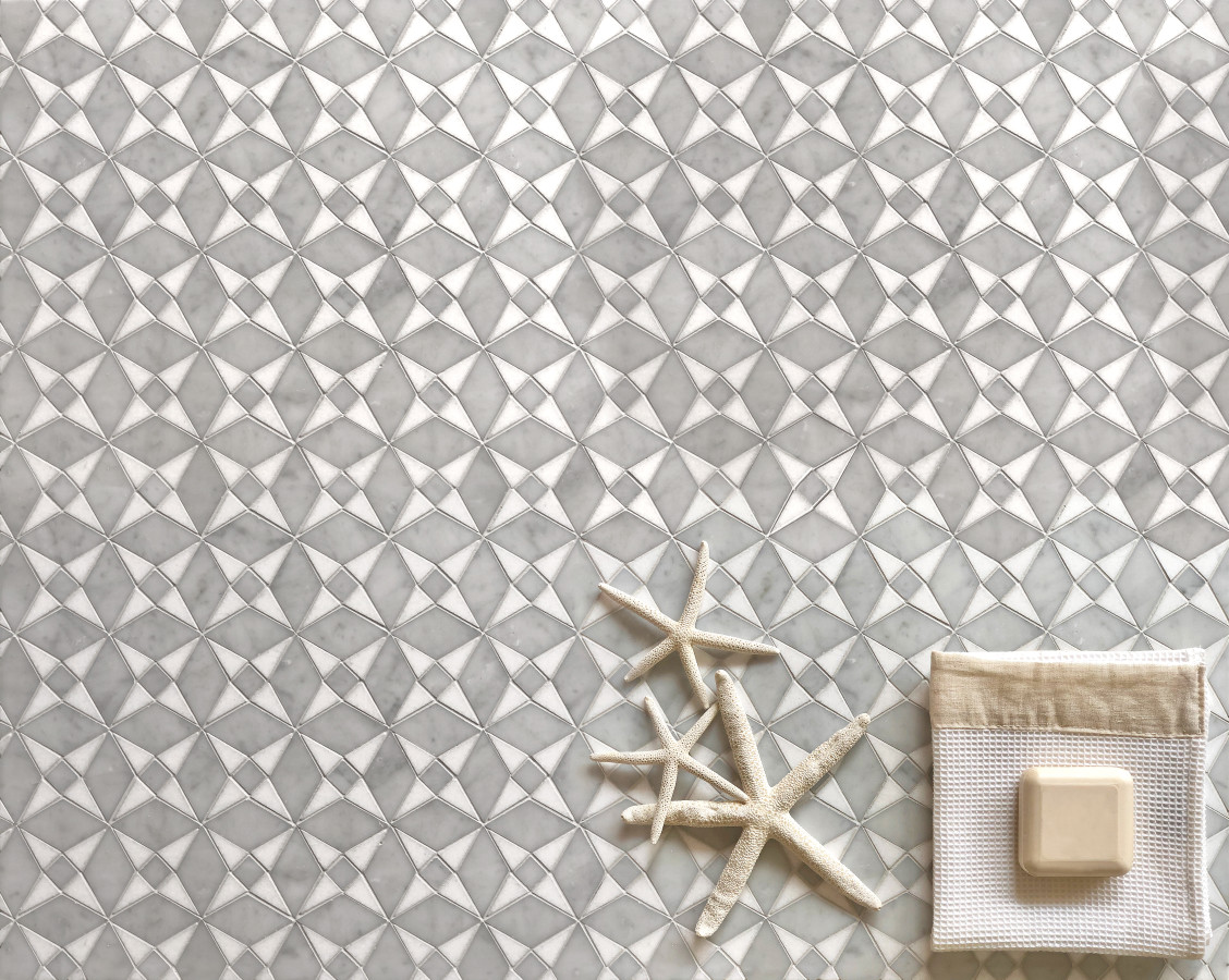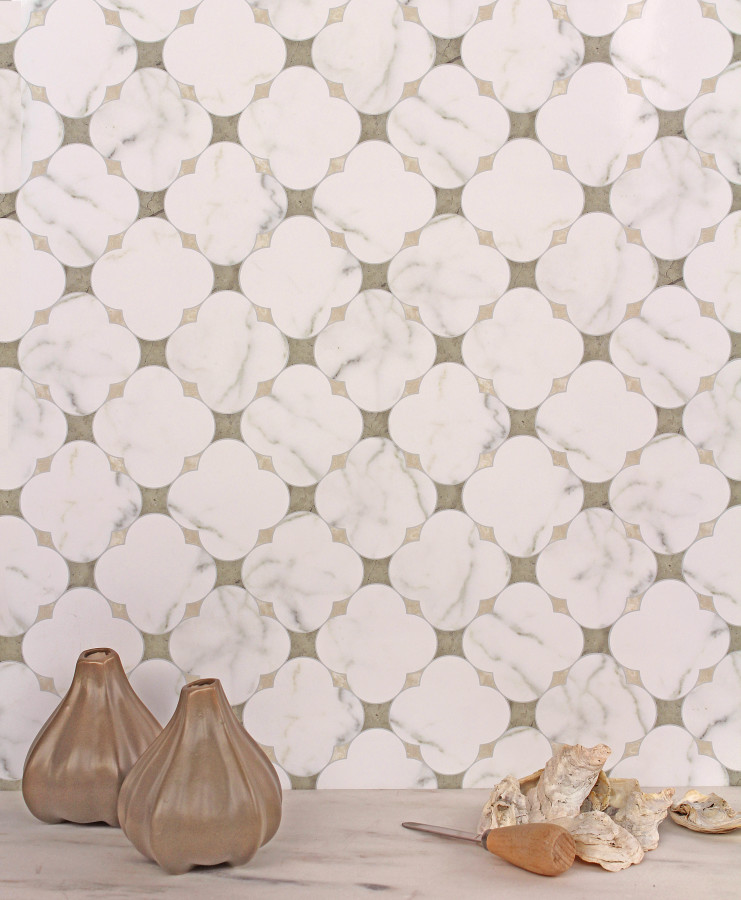 - Olynthos Carrara And Thassos Standard 12×12 Cross Flower Petite Mosaic