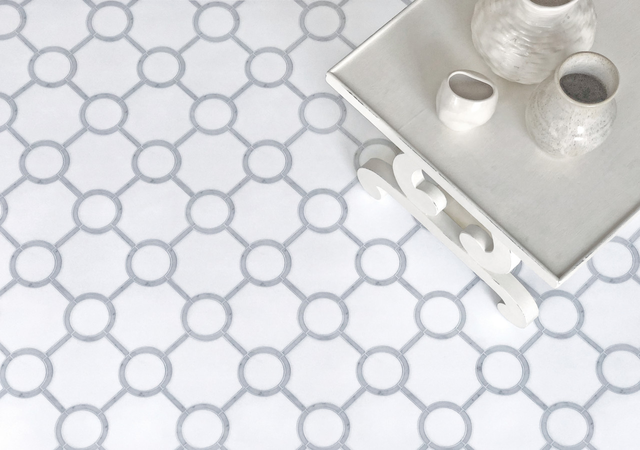 - Olynthos Carrara And Statuary Mist 13×13 Mezzanine Mosaic