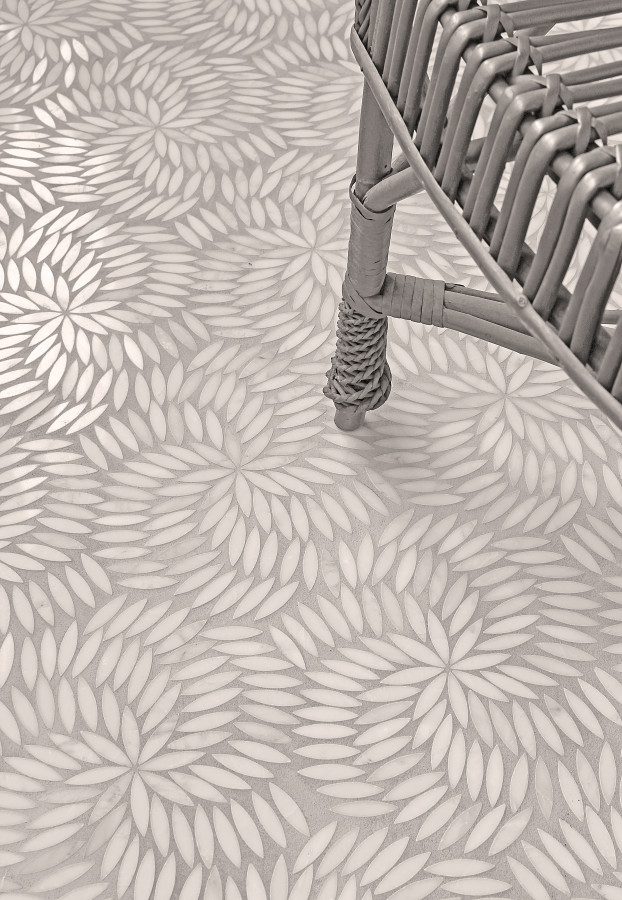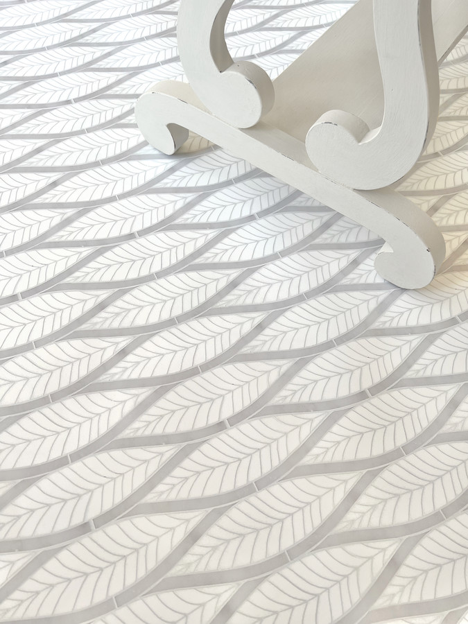 - Olynthos Carrara 10×16 Simple Leaf Swirl Mosaic