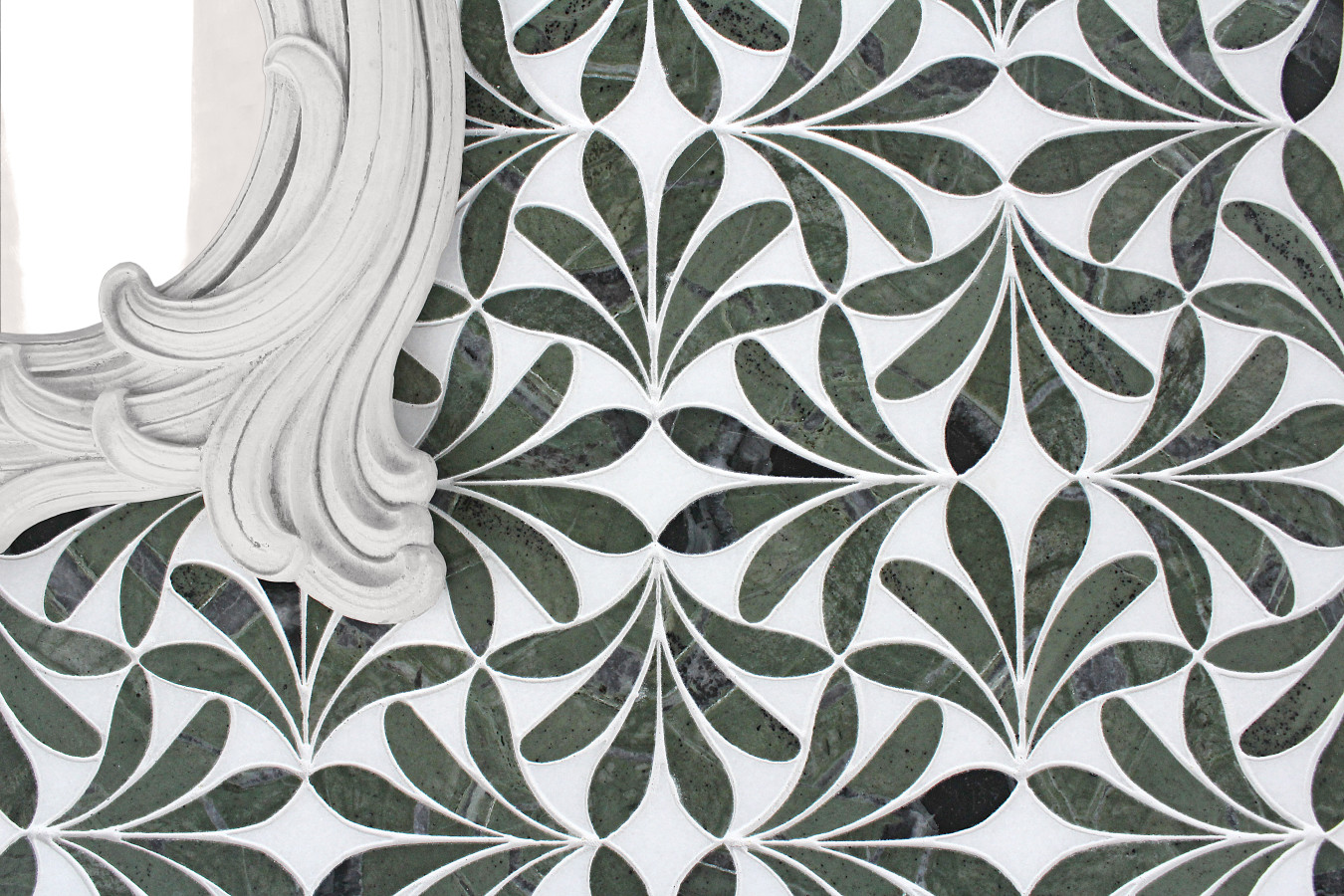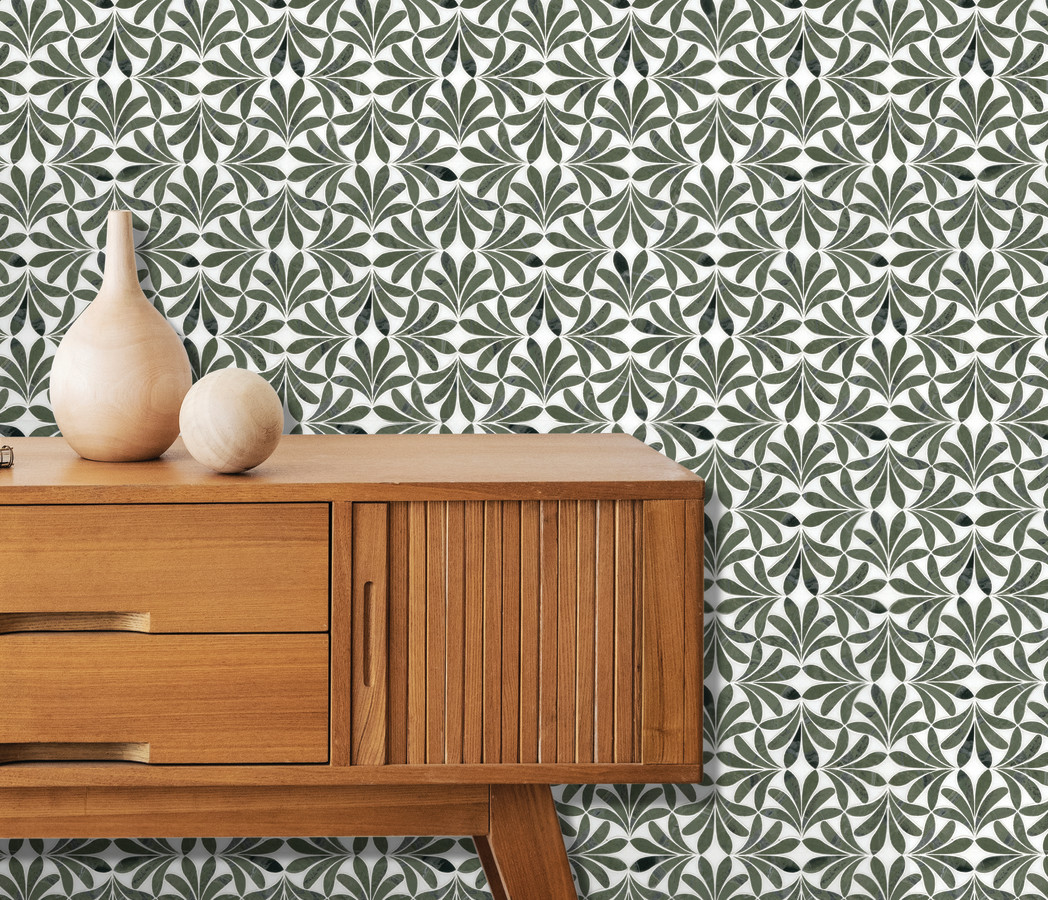 - Olynthos Teos Green And Thassos Standard 11×11 Flamenco Mosaic