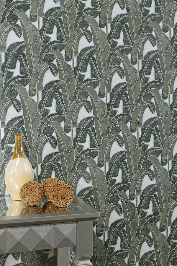 - Olynthos Shamrock, Spring Green, Statuary Mist, And Teos Green 6×12 Devereau Mosaic
